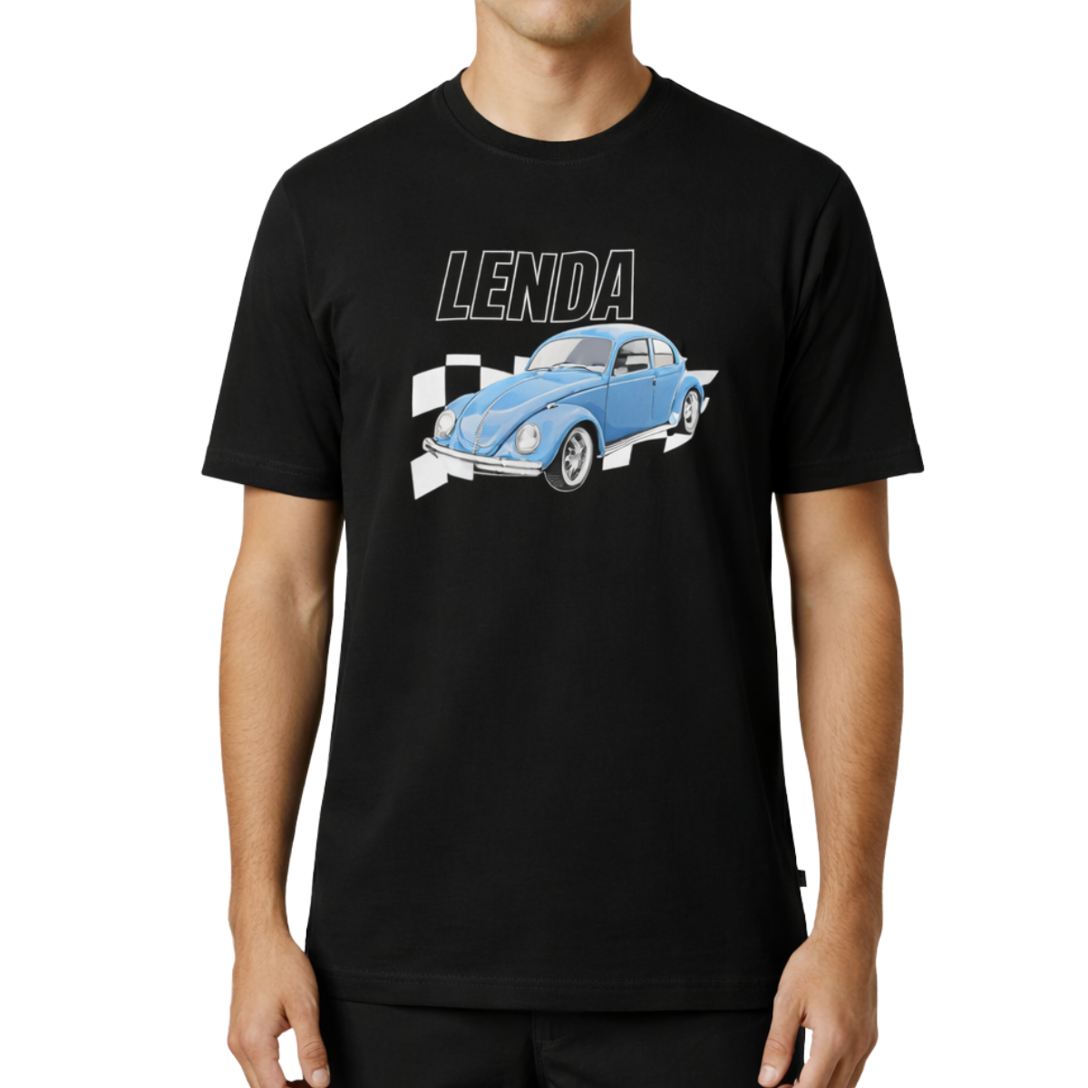 Camiseta masculina com estampa frontal de carro clássico em composição gráfica moderna, trazendo um visual marcante e cheio de atitude. O design combina ilustração detalhada e elementos visuais esportivos, criando uma peça com forte identidade.
